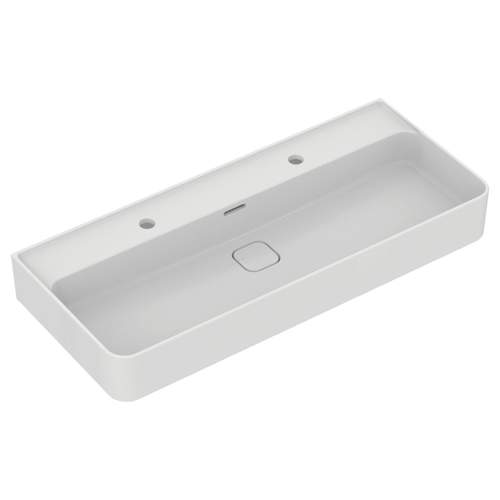 IDE Strada wastafel 1000mm met 2 kraangaten en overloop wit geslepen o